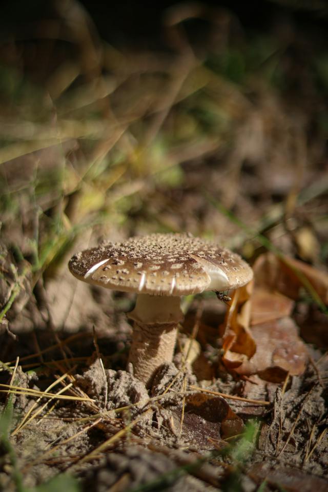 Le chapeau de 4 à 10 cm, brunâtre à gris-brun, maculé par des plaques de voile blanc sale à grisâtre. (blanc pur chez Amanita pantherina). Les lamelles sont libres et blanches. Le stipe est blanc, souvent chiné de grisâtre à brun clair sous l'anneau jusqu'à la base bulbeuse, qui ne possède pas de volve. L'anneau est blanc, collé jusqu'en haut du pied, puis en descendant, il forme une jupe ample, et striée sur le dessus. La chair est blanche, la saveur douce, et l'odeur bien marquée de rave ou de radis.