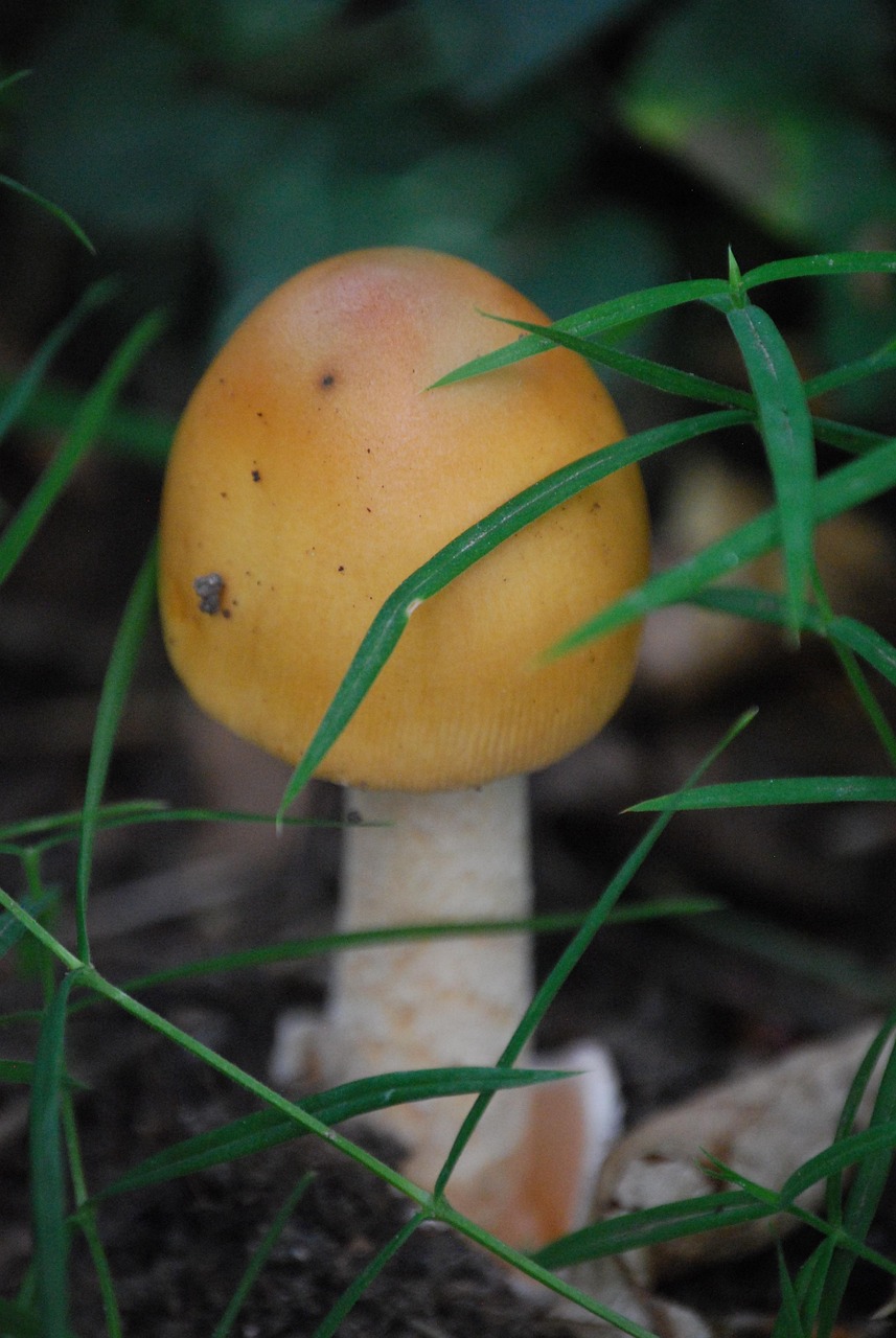 L'Amanite safran est une belle espèce plutôt rare, dont le nom scientifique est Amanita crocea. Cette Amanitaceae n'est pas très difficile à reconnaître avec sa couleur orange, elle se détache bien sur les fonds de la nature. Son chapeau, légèrement cannelé à la marge, mesure de 5 à 18 cm en moyenne, il arbore généralement des tons orangés à jaune-orangé, tandis que certaines récoltes font état de spécimens à la couleur coquille d'œuf. Plus occasionnellement, on pourra croiser des individus très pâles, dans ces cas-là, seul l'utilisation du phénol, un des produits chimiques utilisé en mycologie pour identifier certaines espèces, confirmera qu'il s'agit bien d'une Amanite safran, en provoquant une réaction de couleur groseille sur la chair et la surface du pied. Les lames sont libres, blanches, puis ocres pâles dans l'âge avancé. Le stipe sans anneau, est pelucheux, chiné de couleur crème orangée à orangé, la volve est blanche à l'extérieur, ocre à orangé à l'intérieur. La chair est blanche, la saveur douce, et l'odeur presque nulle.