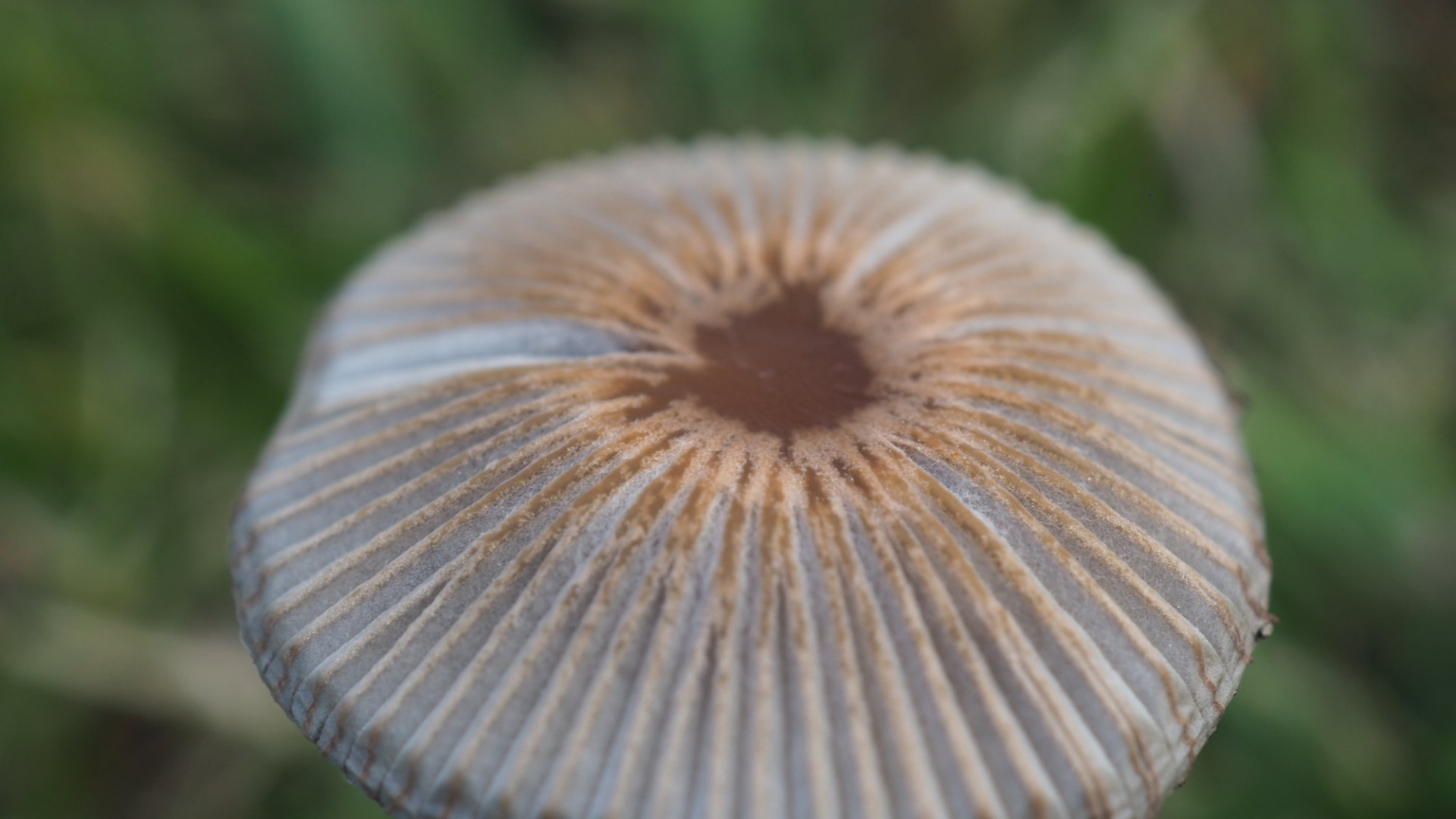 Nom scientifique : Parasola plicatilis. Nom français : Coprin plissé. Famille : Psathyrellaceae.