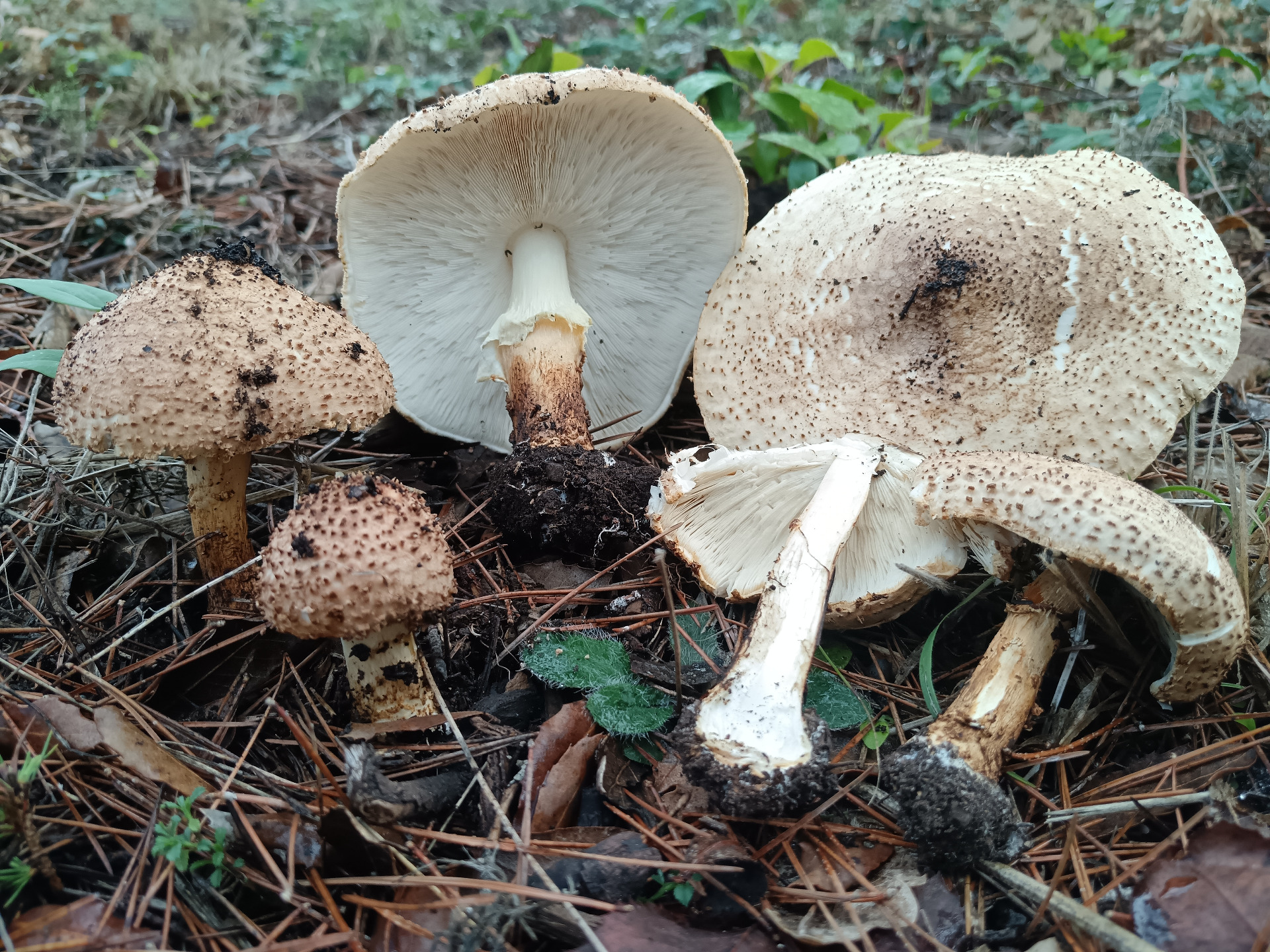 Echinoderma asperum ou la Lépiote à lames fourchues, est encore appelée quelques fois Lépiote à écailles. Le genre Echinoderma comporte nombre d'espèces plutôt dures à séparer les unes des autres, cependant notre Asperum possède des spores plus grosses, ainsi, l'analyse microscopique fera vite la différence. Ce champignon ne vit pas en symbiose avec les arbres, il trouve sa place en automne, parfois dès la fin de l'été, dans des lieux plutôt dégagés, dans l'herbe, orées de bois, chemins, et ne dédaigne pas les endroits rudéraux.