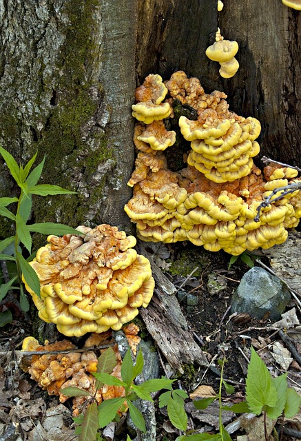 Classification : nom scientifique : Laetiporus sulphureus. Nom français : Polypore soufré. Famille : Polyporaceae. Nom vernaculaire : poulet ou poule des bois.